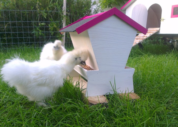 Eine Hühnerstall oder Futterstation kann Mann /Frau übrigens recht einfach selber bauen. Eine Möglichkeit dafür stellen die folgenden Bilder vor. Dabei wird eine Hühnerhaus und eine Futterstation gebaut, die Futterstation kann von beiden Seiten aus genutzt werden  und bietet Platz für Drei unterschiedliche Futtersorten. Es können auch weniger zwischenbretter eingezogen werden.